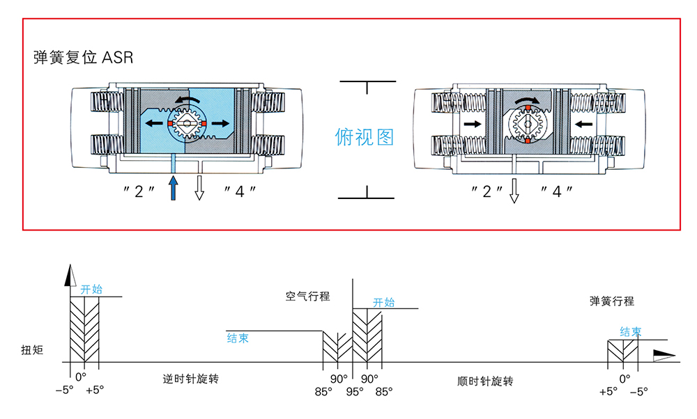 空氣行程:開始:彈簧釋放狀態(tài)下的執(zhí)行機構(gòu)扭矩 結(jié)束:彈簧壓縮狀態(tài)下的執(zhí)行機構(gòu)扭矩